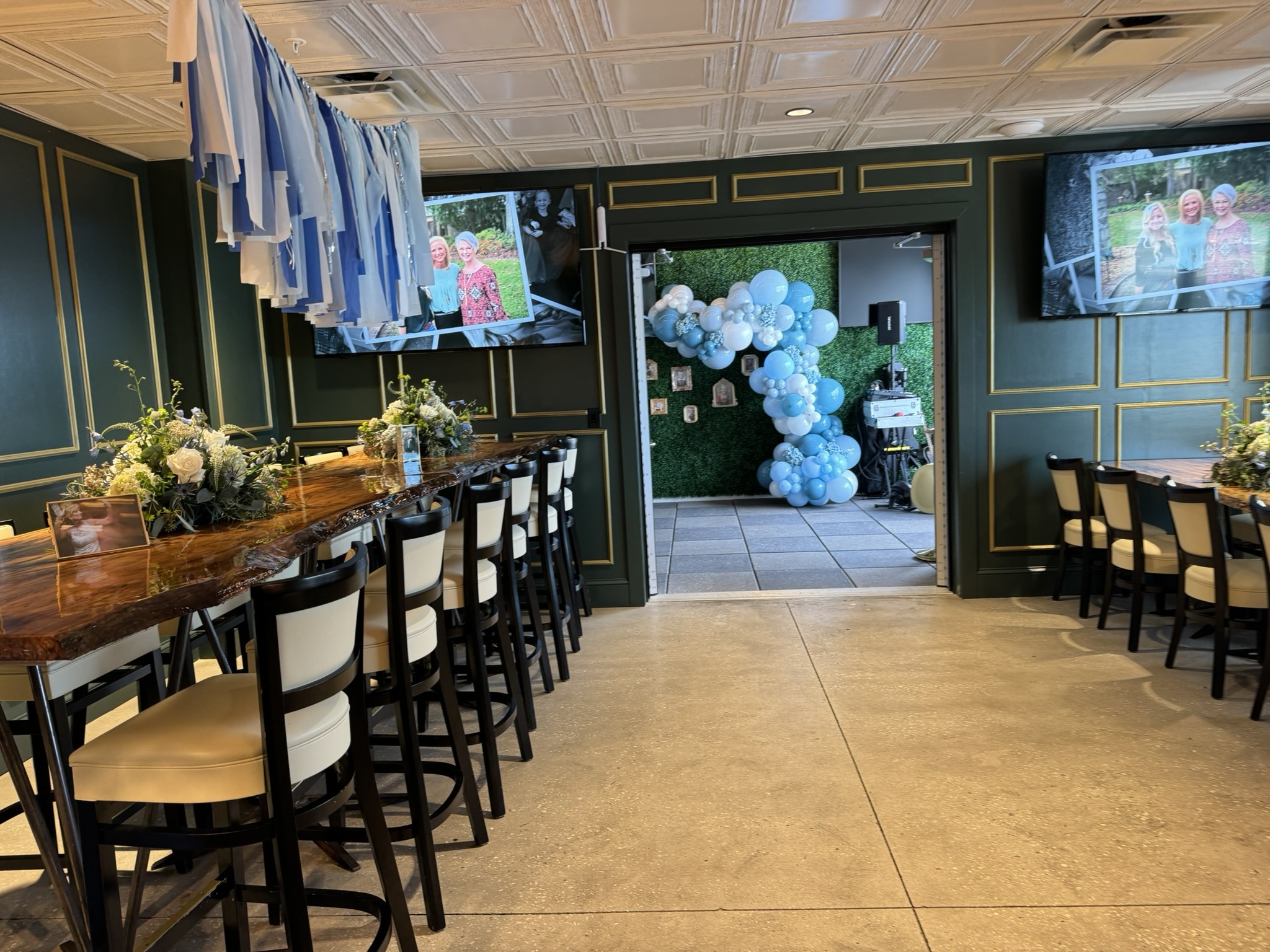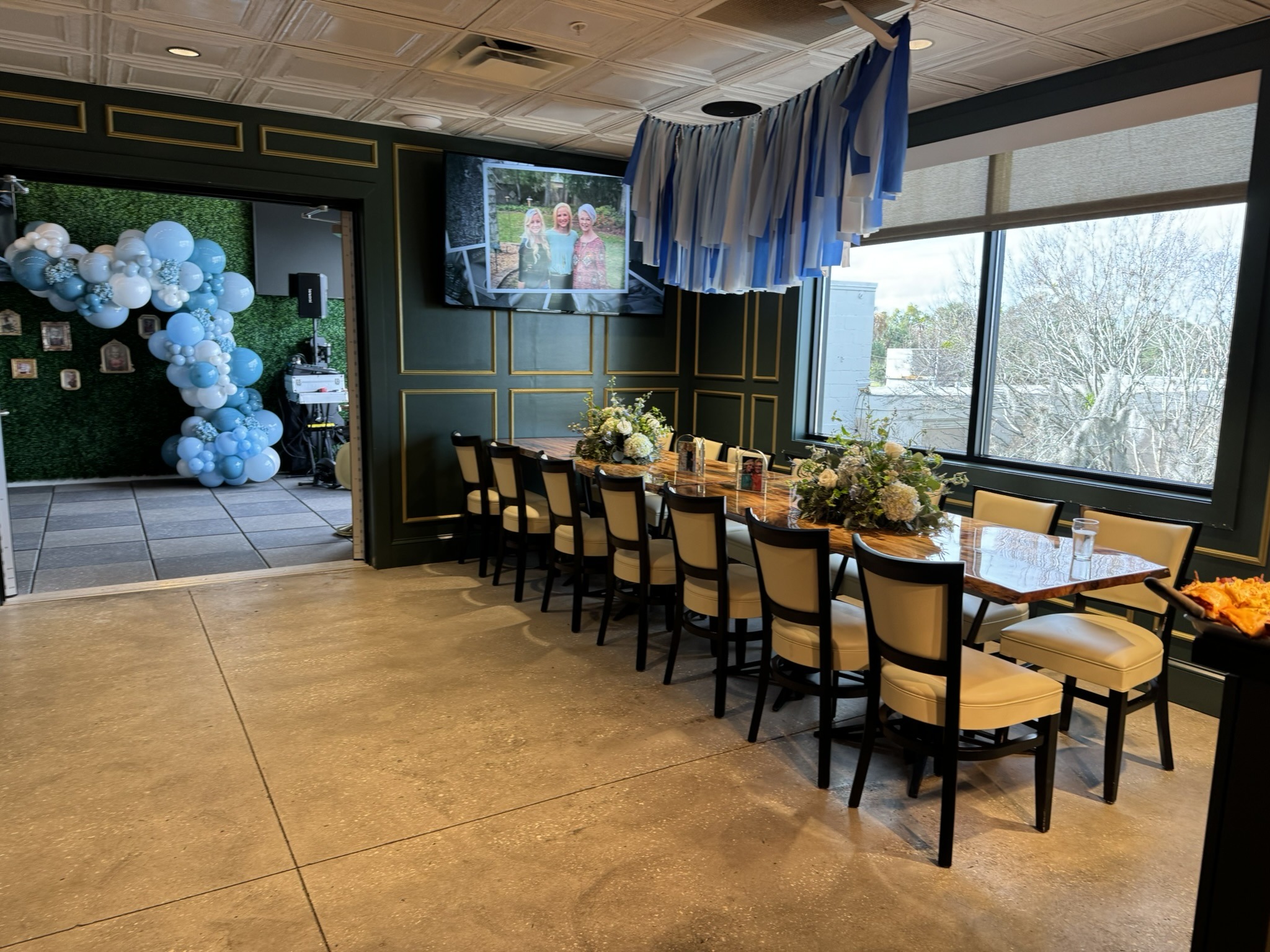 Our Private Event Room Holds Up to 40 People and includes a private balcony.