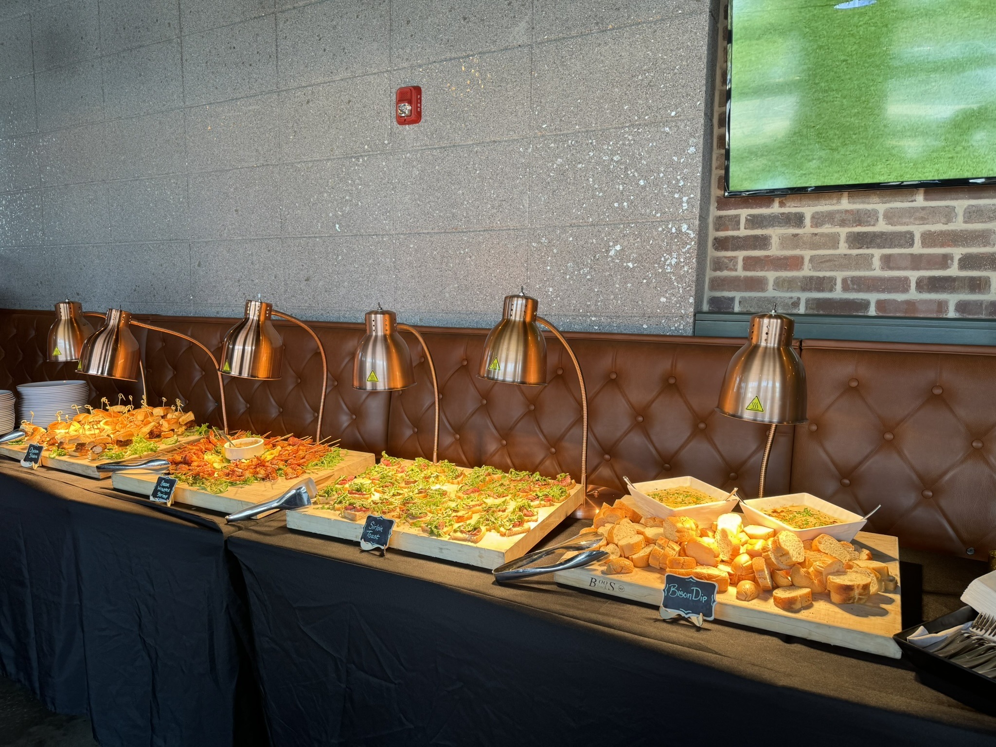 Your guests will enjoy a truly exceptional dining experience with our chef-driven catering. The room features a dedicated food-gathering area, fully equipped with everything needed to present your curated menu with grace and style. Since all catering is handled in-house by our expert team, you can be sure your event menu will be as memorable as the setting.